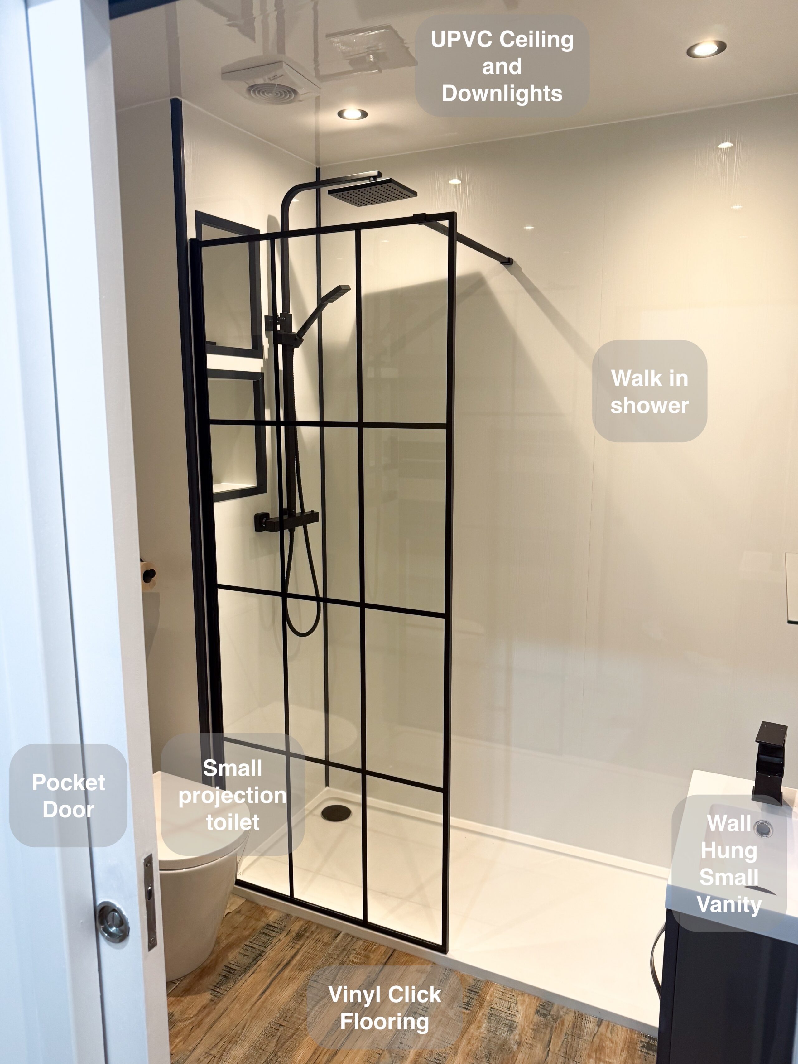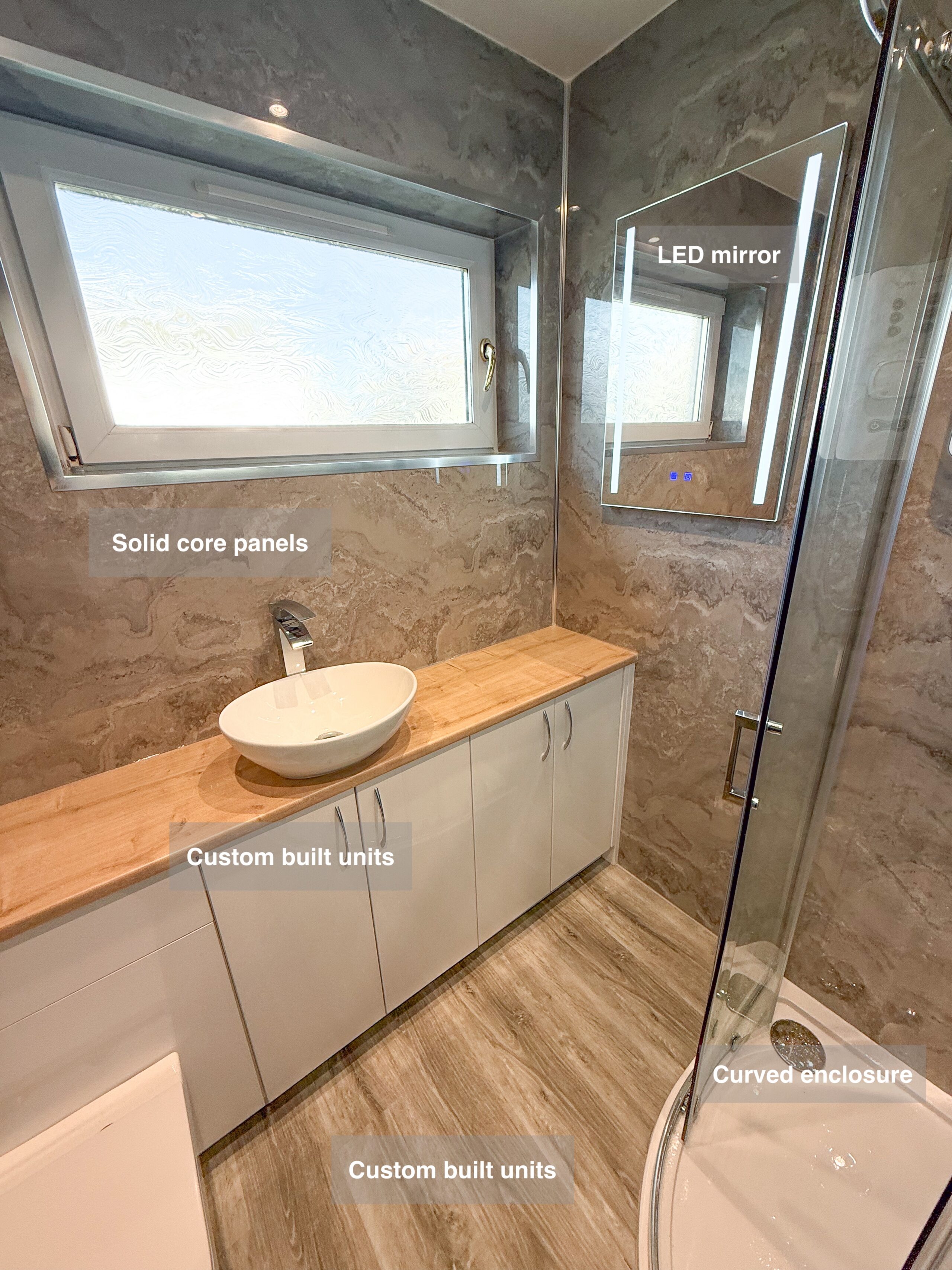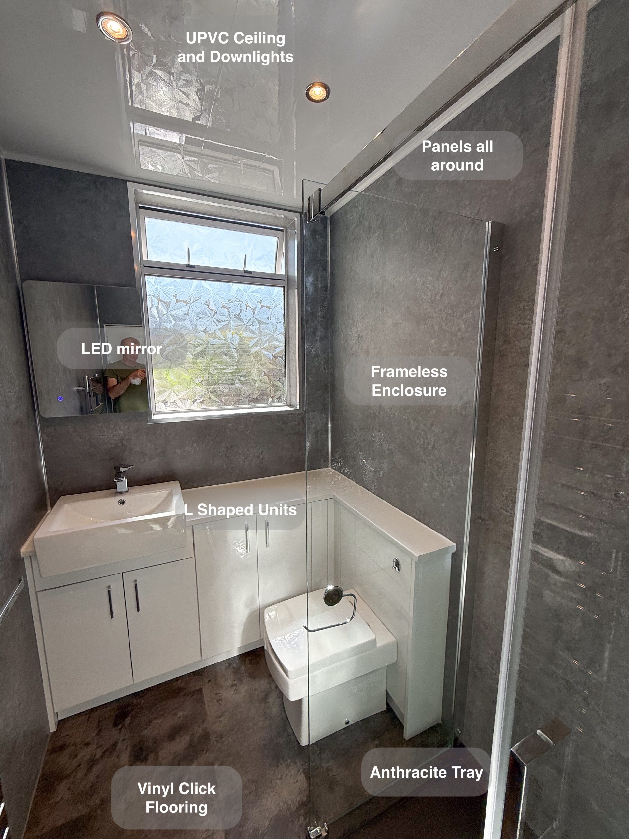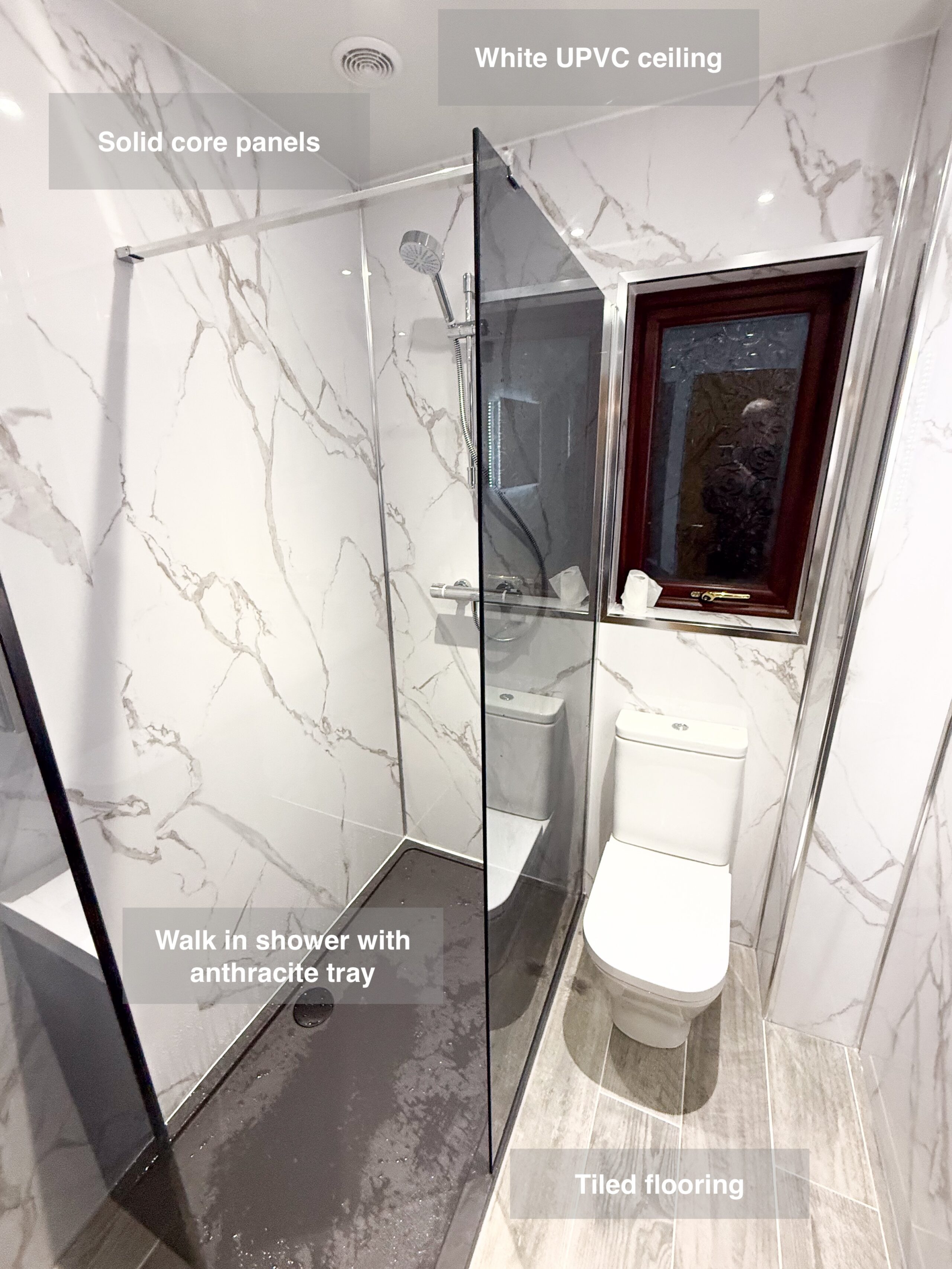 One of our recent projects showcases a modern and low-maintenance design, combining durability with style. ✅ Solid core panels fitted throughout the room for a seamless, waterproof finish. ✅ Vinyl click flooring, offering both elegance and practicality. ✅ LED mirror placed strategically on the side wall to work with the window layout. ✅ Curved enclosure, maximising space and comfort. ✅ Electric towel radiator for added warmth and luxury. ✅ UPVC ceiling panels for a clean, hassle-free finish. ✅ Downlights for a bright and inviting space. ✅ Inline extractor fan to keep the room fresh and moisture-free. https://youtu.be/jFGTsyr0PNo