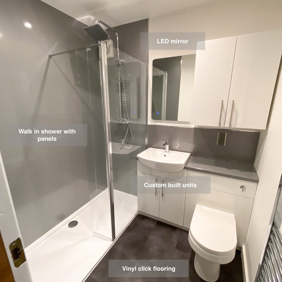 Full refurbishment with tiles all around the room, shower enclosure, wall mounted vanity unit. 3D Scan https://www.youtube.com/watch?v=5LxkD4HsDII