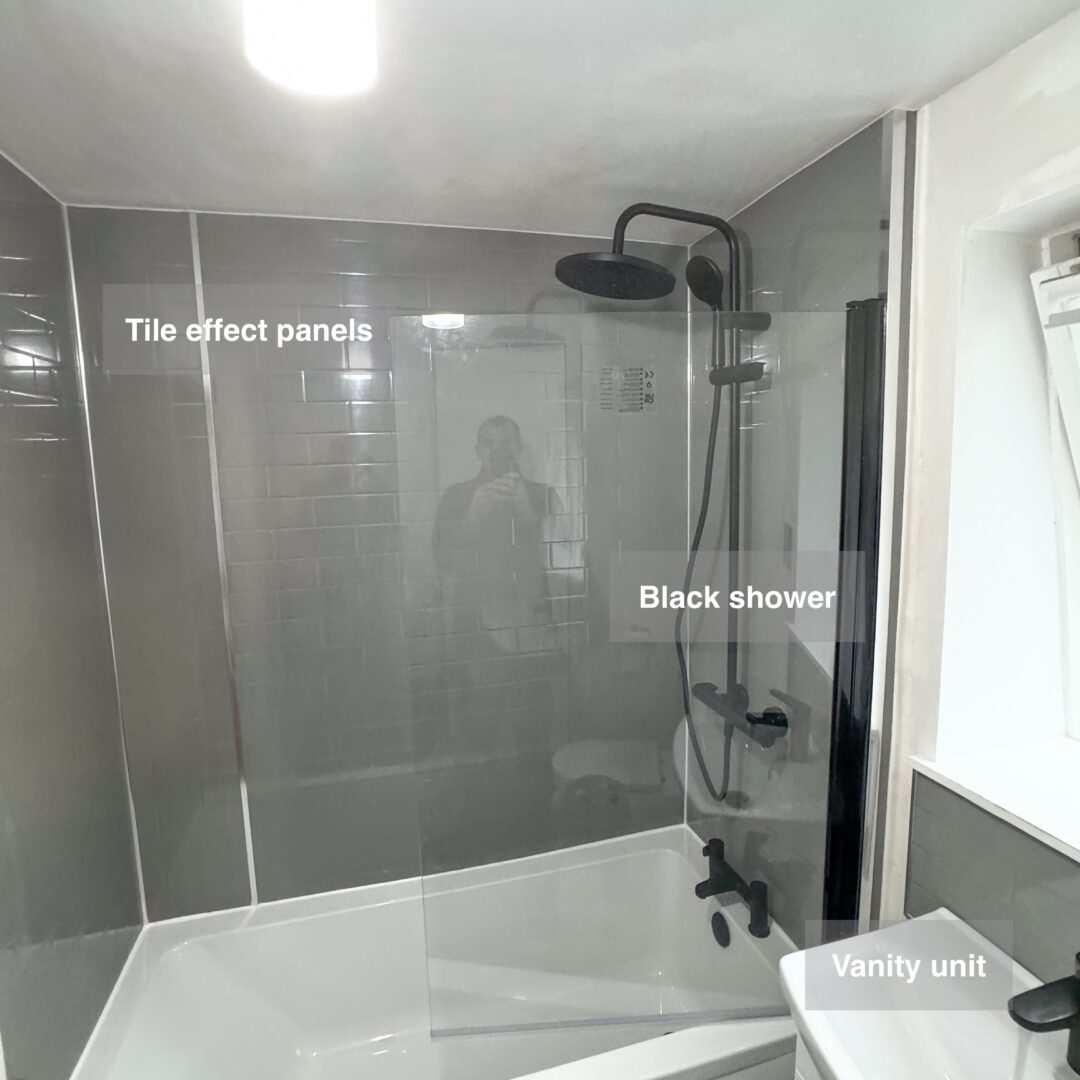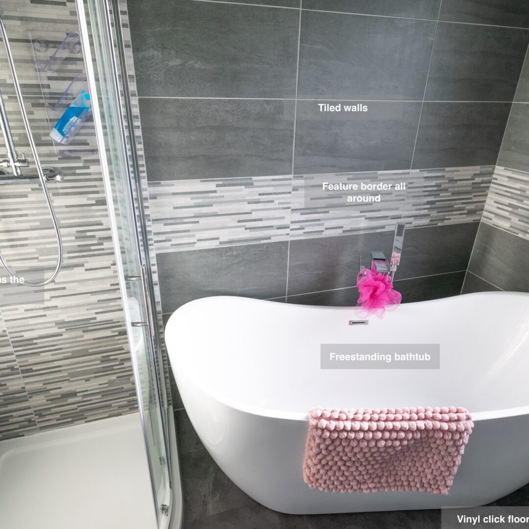 We completed a full bathroom refurbishment, transforming the space into a stylish and functional retreat. The old bathtub was replaced with a sleek, hybrid freestanding bathtub positioned against the wall, complemented by a wall-mounted tap for a clean, modern look.