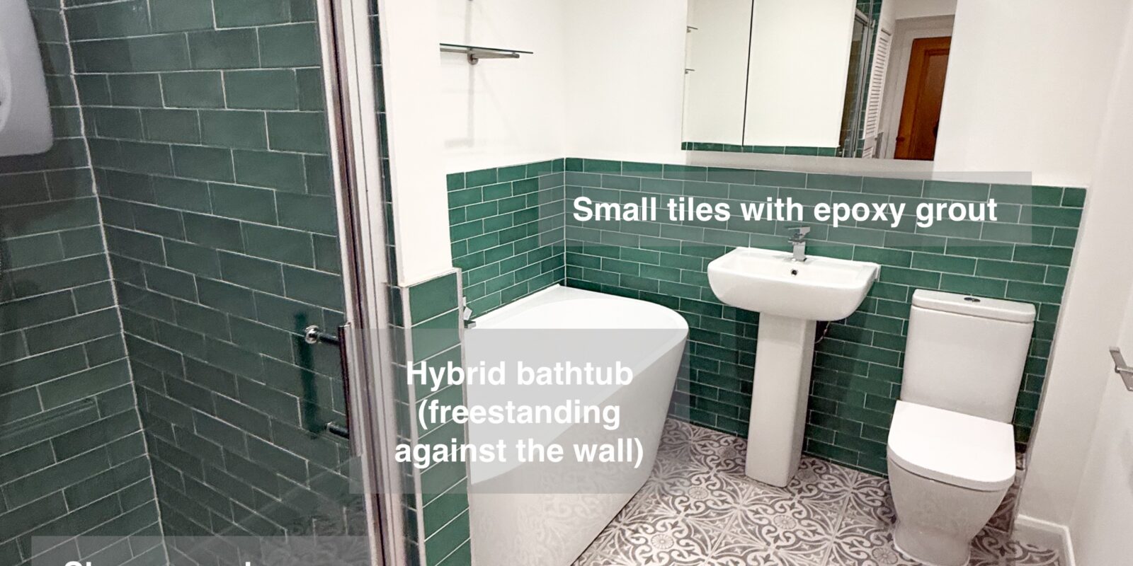We completed a full bathroom refurbishment, transforming the space into a stylish and functional retreat. The old bathtub was replaced with a sleek, hybrid freestanding bathtub positioned against the wall, complemented by a wall-mounted tap for a clean, modern look.