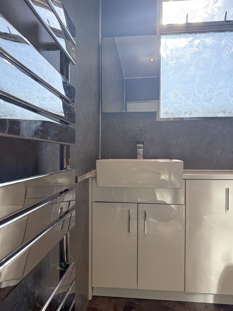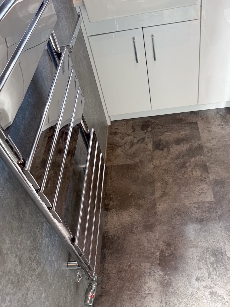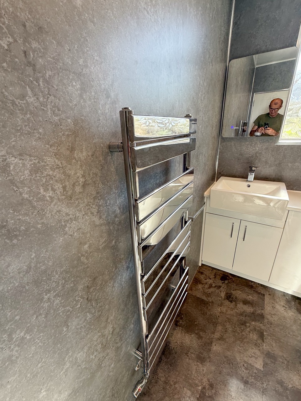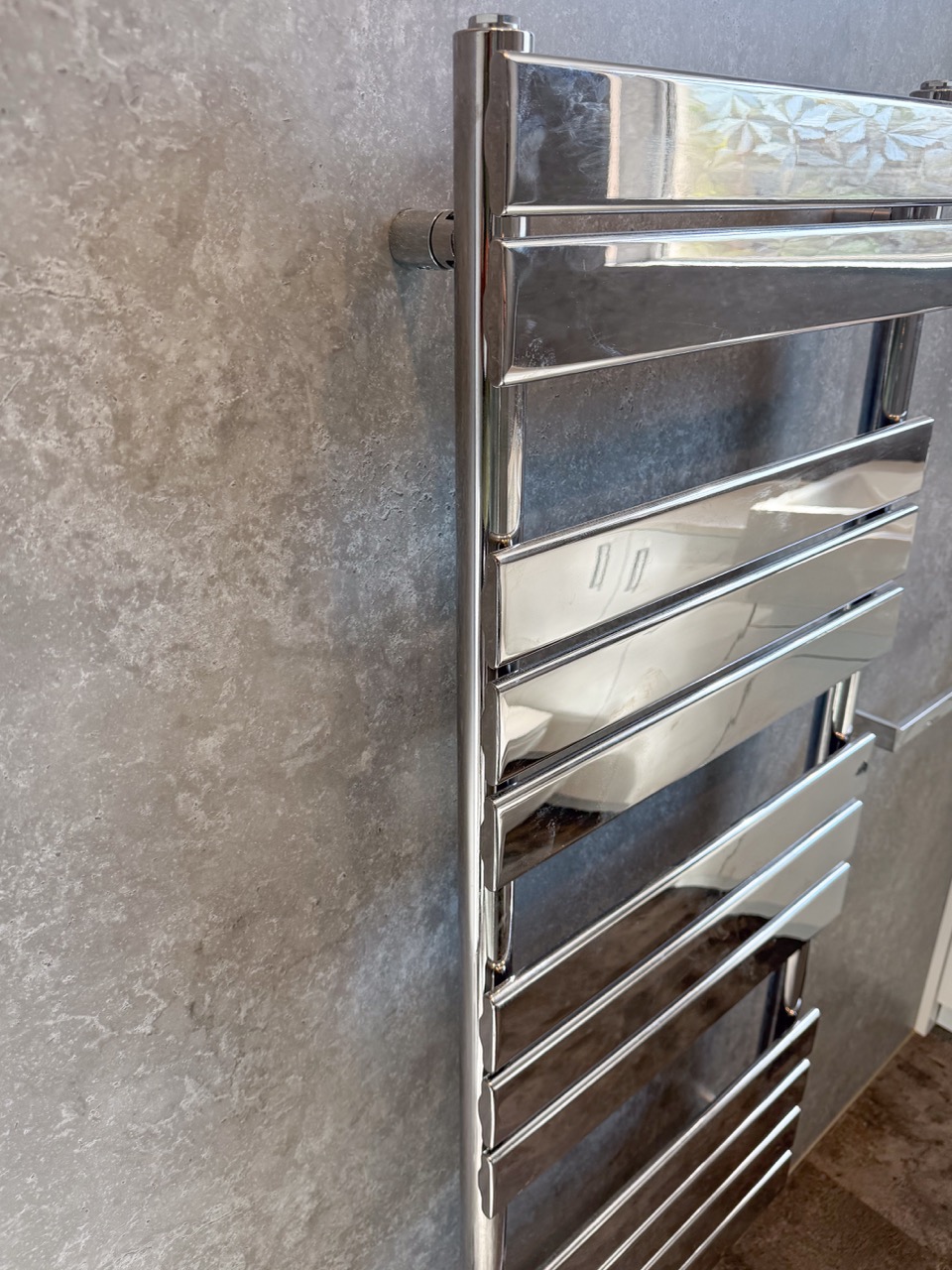 - A large towel radiator with concealed pipework from the wall – perfect for keeping warm in winter.