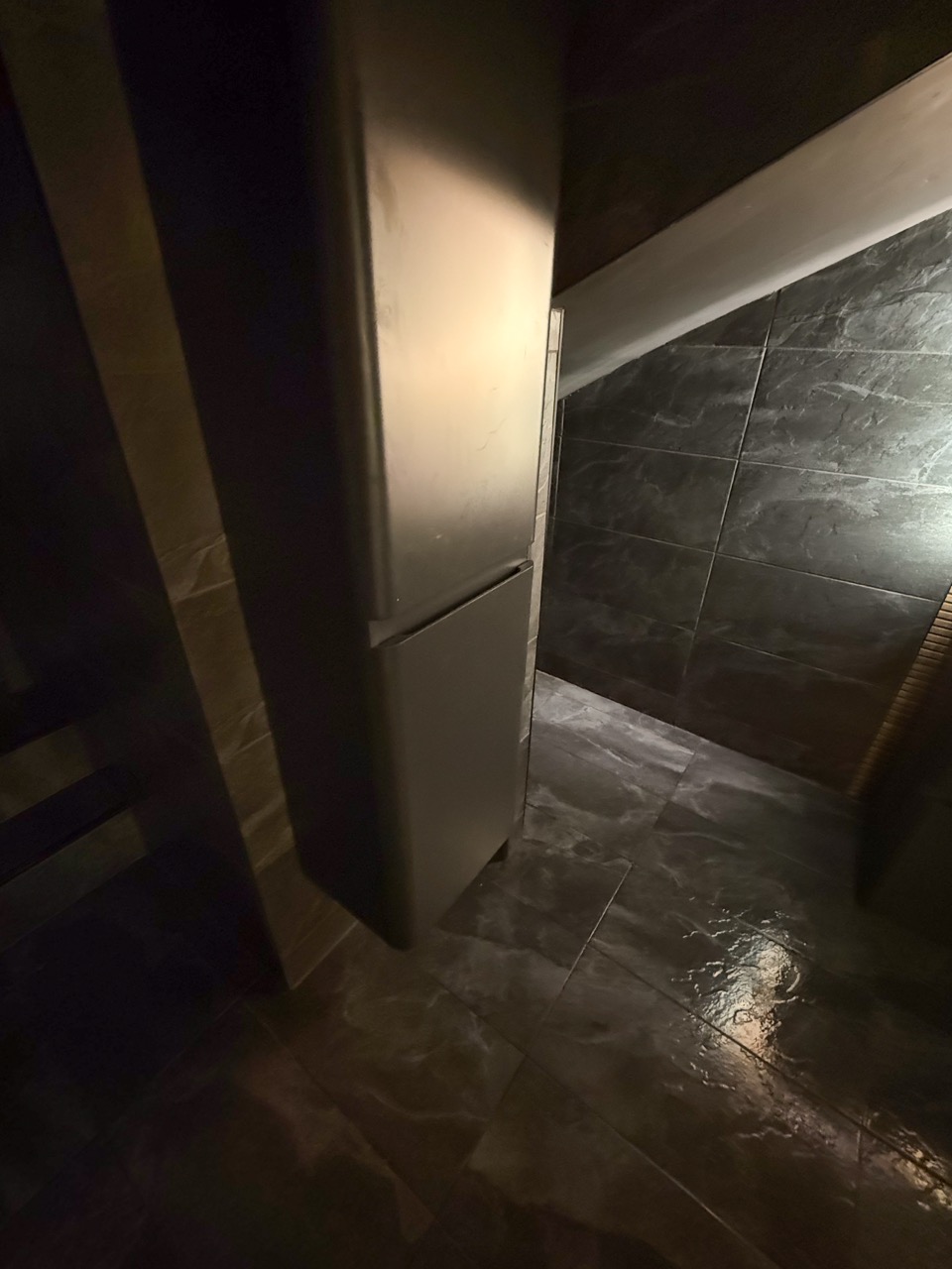 This was a slightly more challenging project in an older granite house, with part of the room sitting below ground level. The space had previously been a cloakroom, and the customer wanted to turn it into a proper bathroom while still keeping some useful storage.