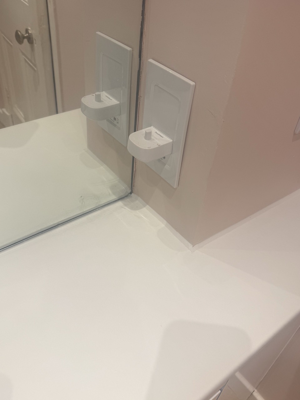 To complete the space, we added small details that make daily life easier, such as a built-in toothbrush charger, keeping worktops free from cables and clutter.