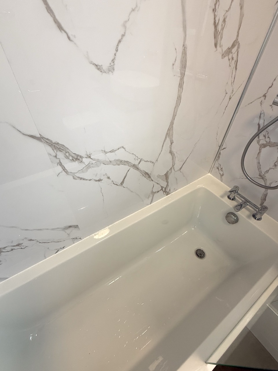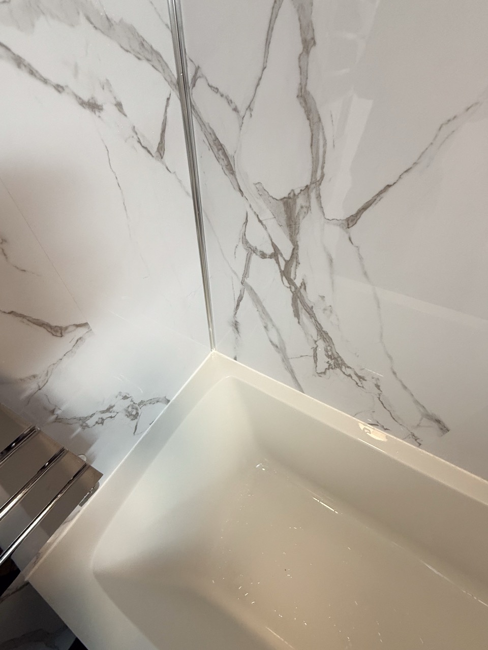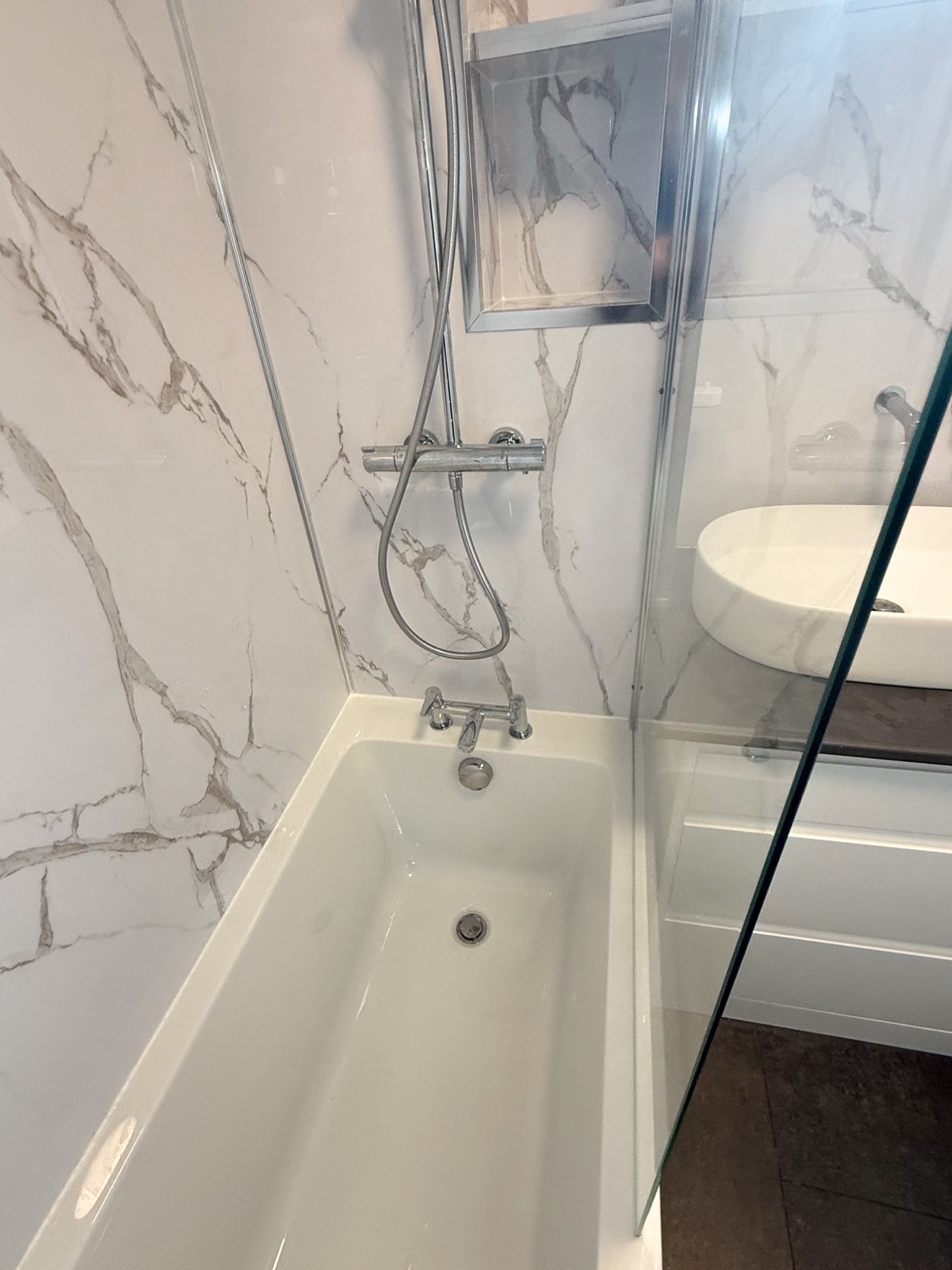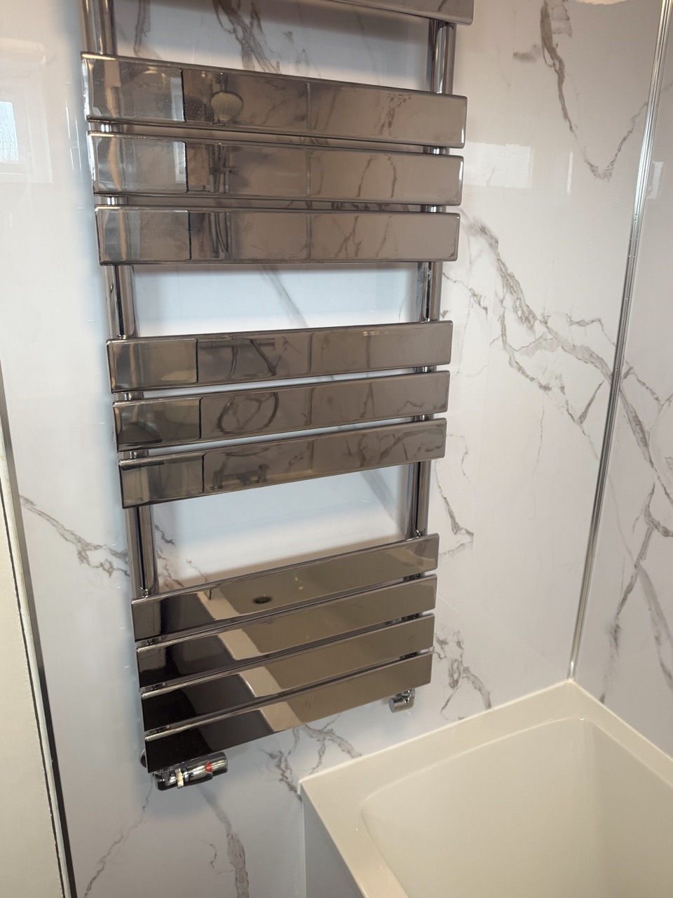 - Repositioned the towel radiator to the end of the bath, so warm, dry towels are always within reach after a shower.