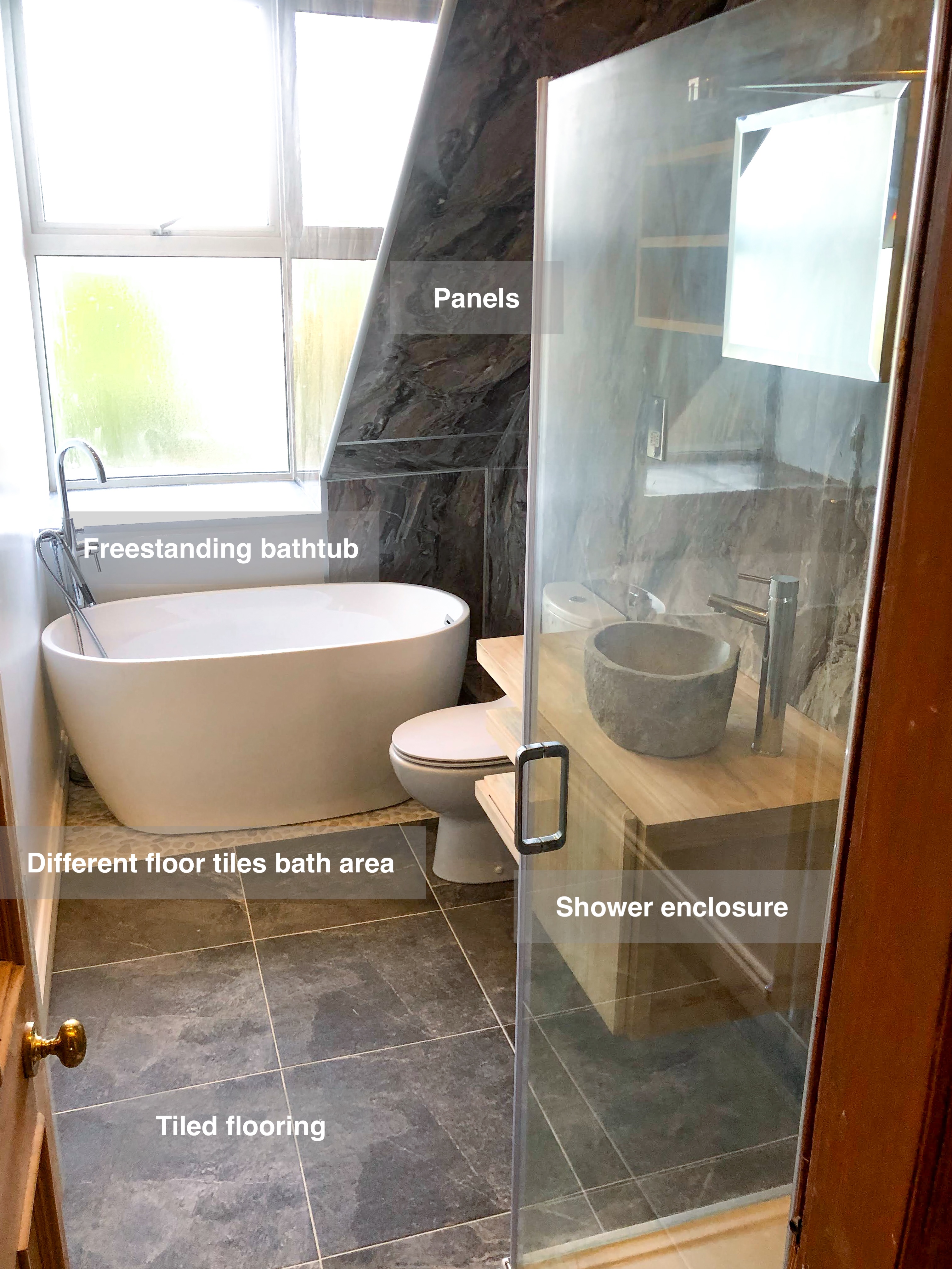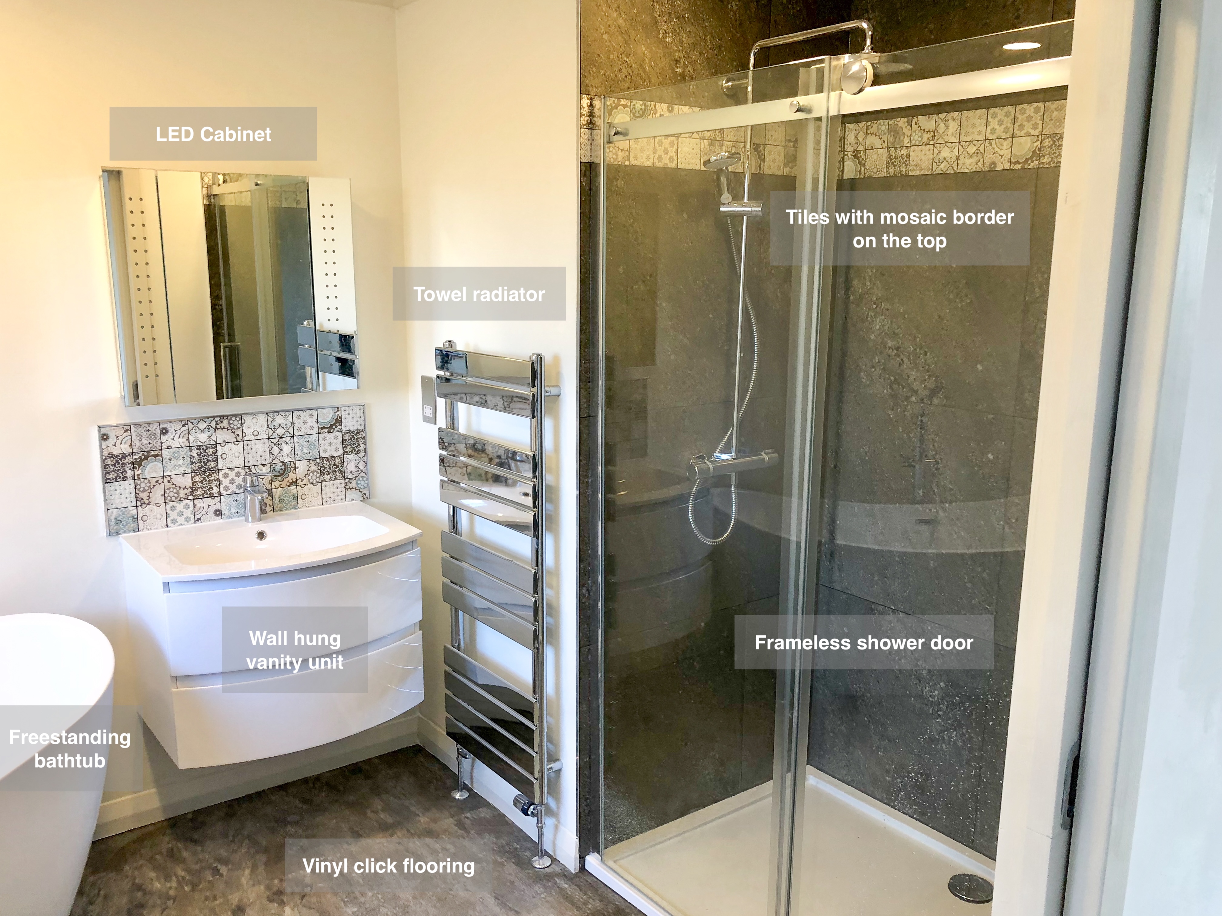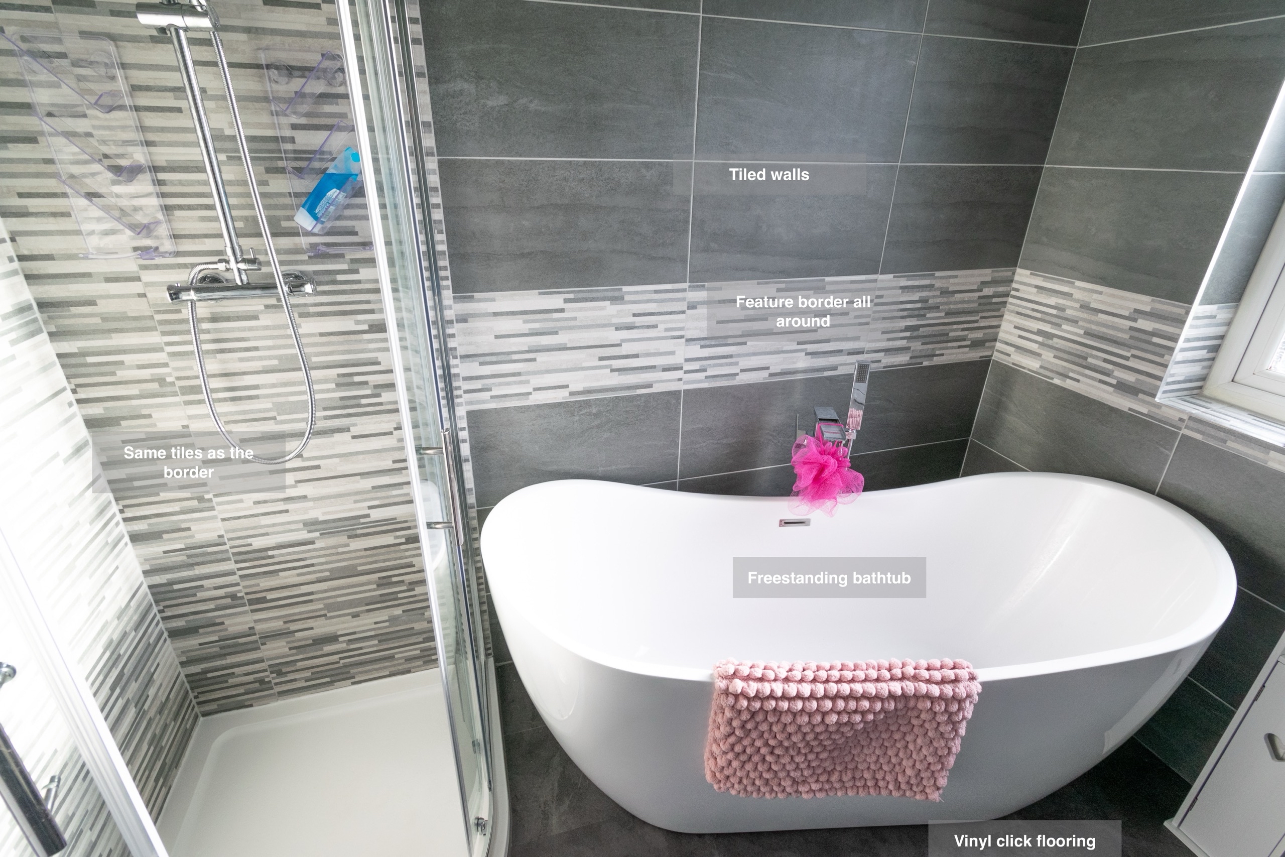 Full refurbishment with tiles all around the room, shower enclosure and freestanding bathtub. https://youtu.be/JSfBaK4XJ2k
