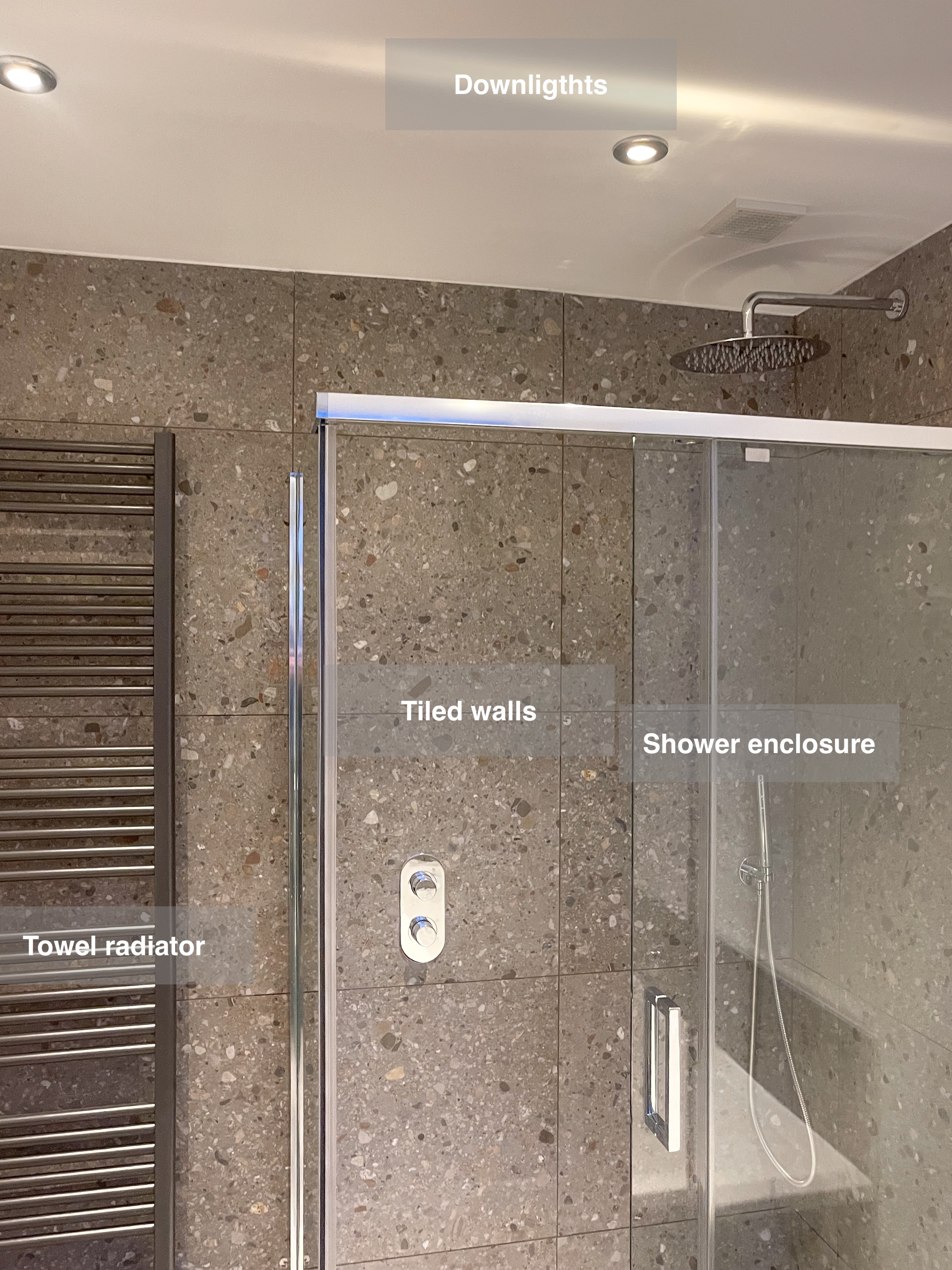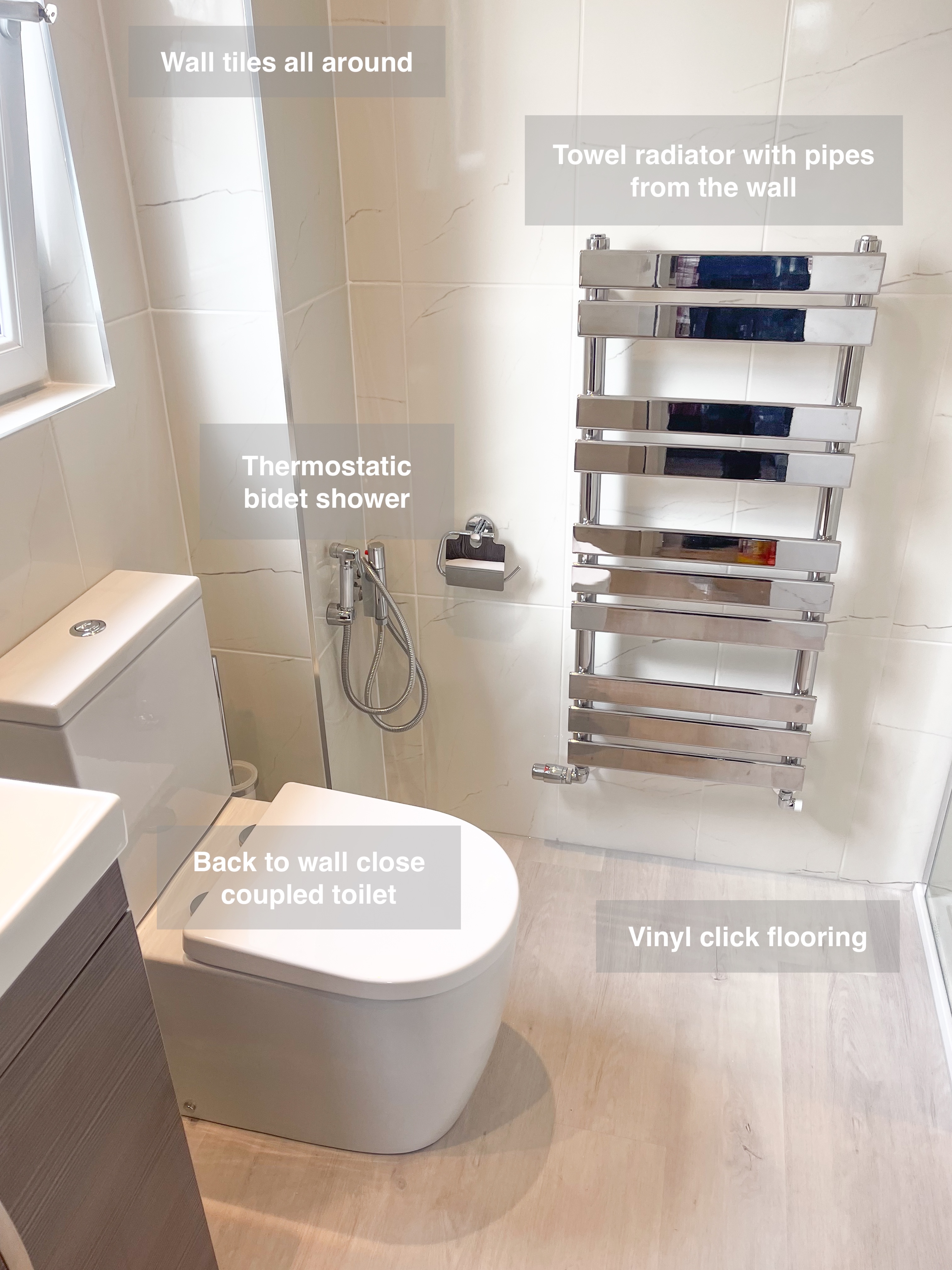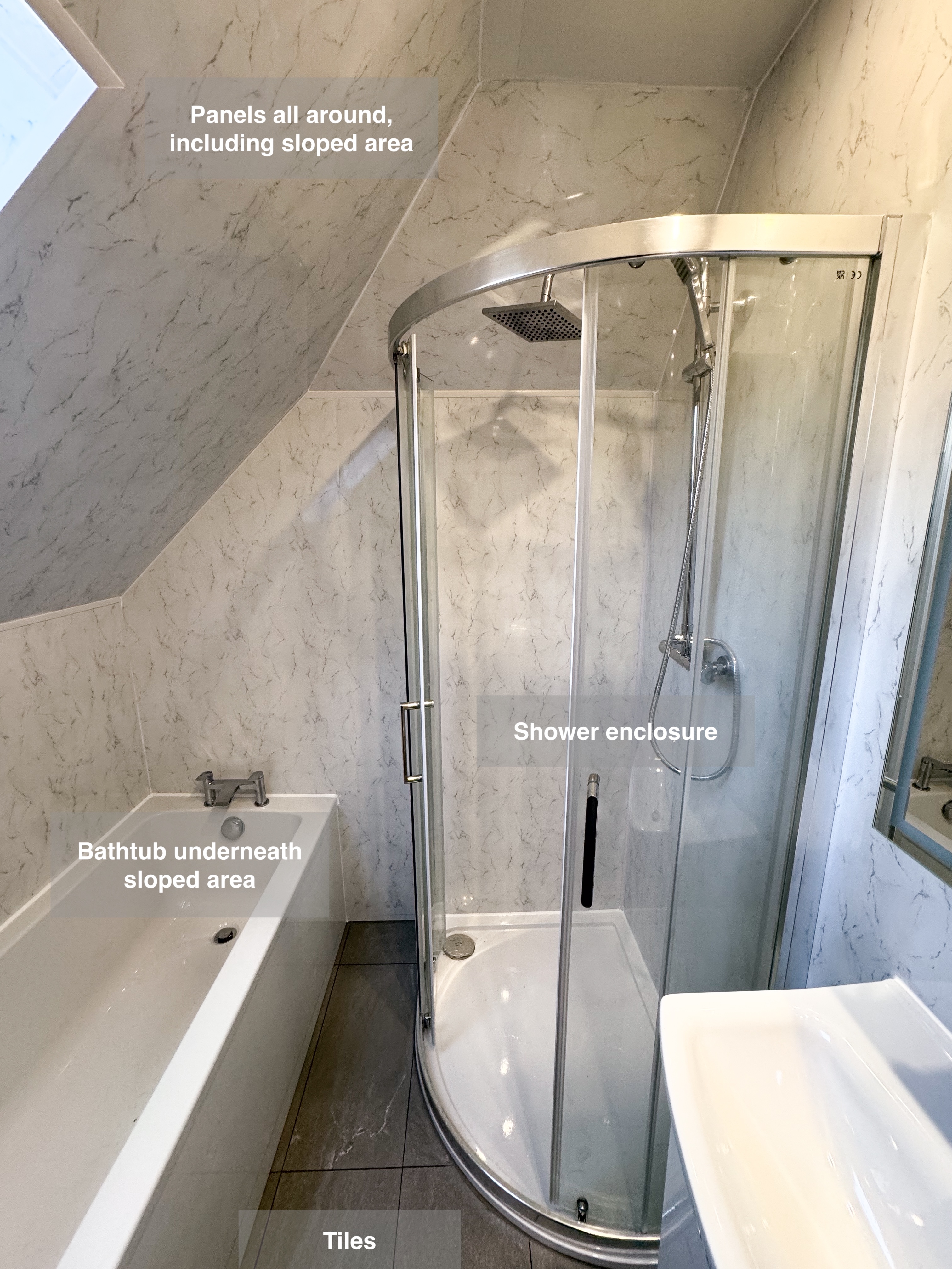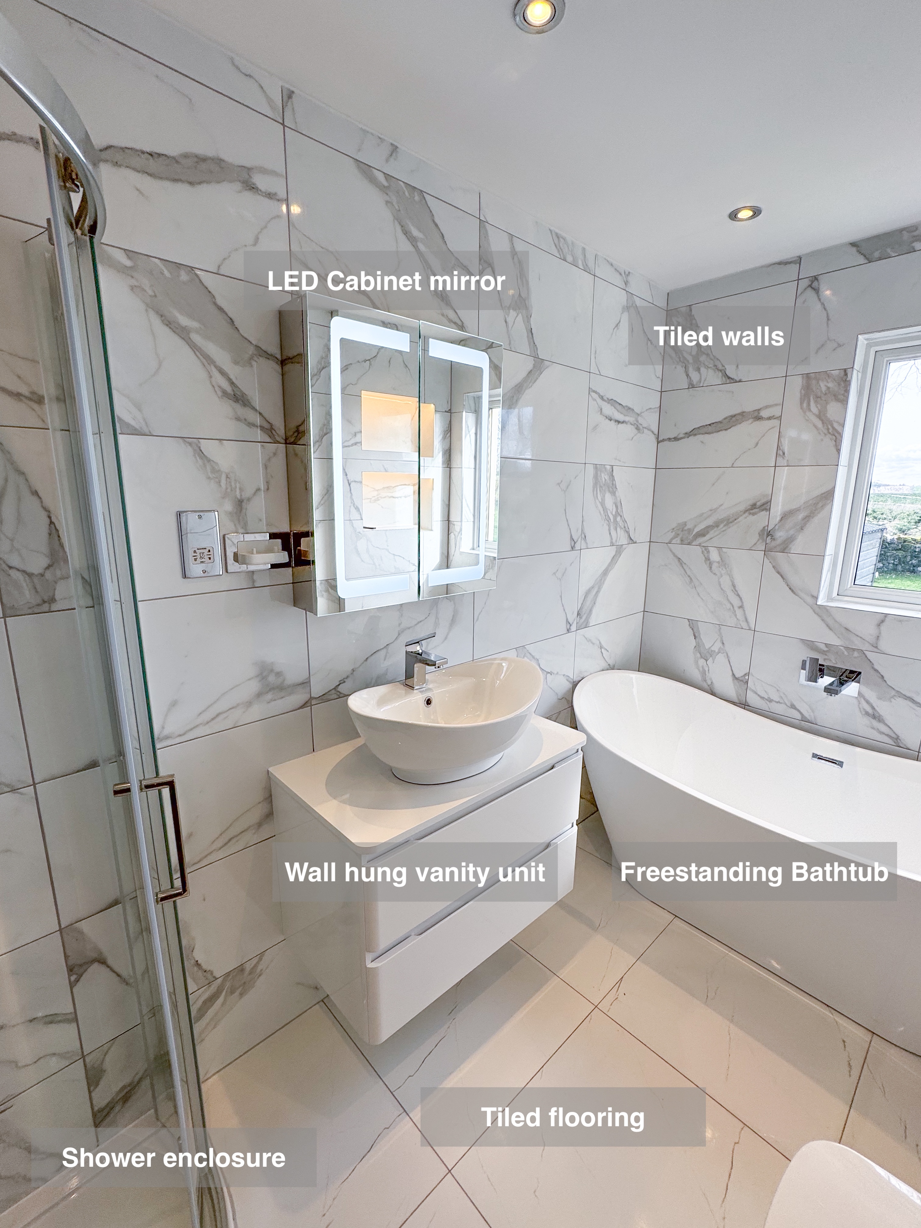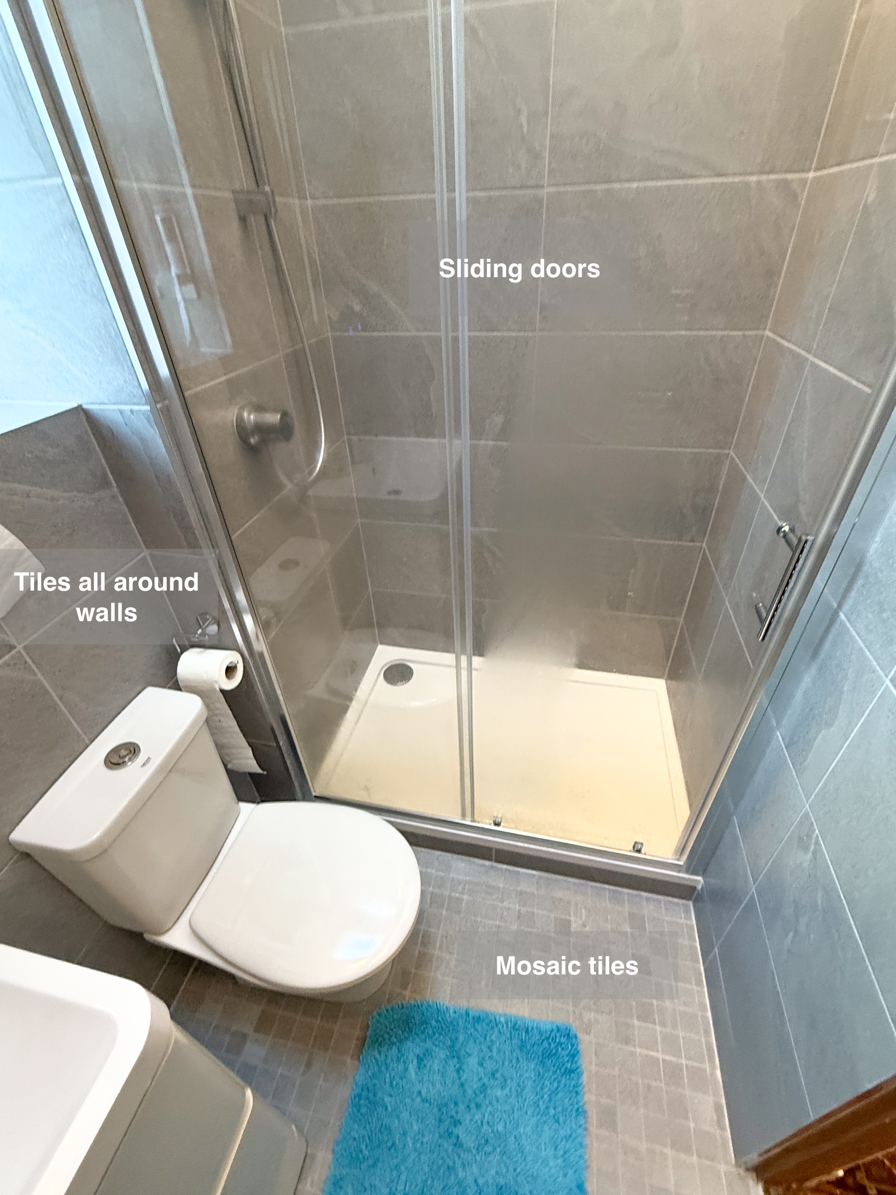 Full refurbishment with tiles all around the room, shower enclosure, wall mounted vanity unit. 3D Scan https://www.youtube.com/watch?v=5LxkD4HsDII