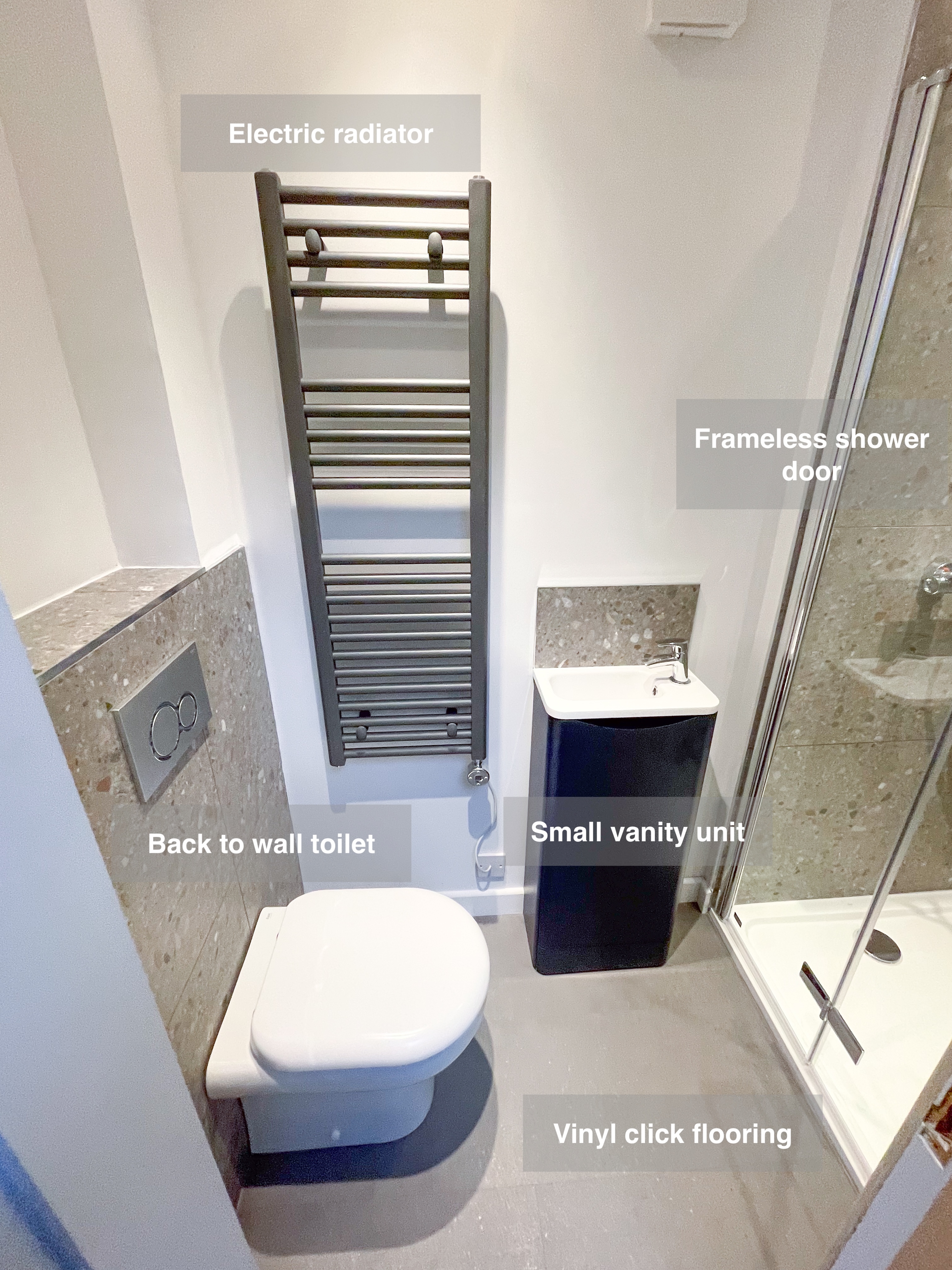 This is a (relatively) large cupboard that we converted into a shower room. It’s was a small space, sometimes cloakrooms are larger than this.