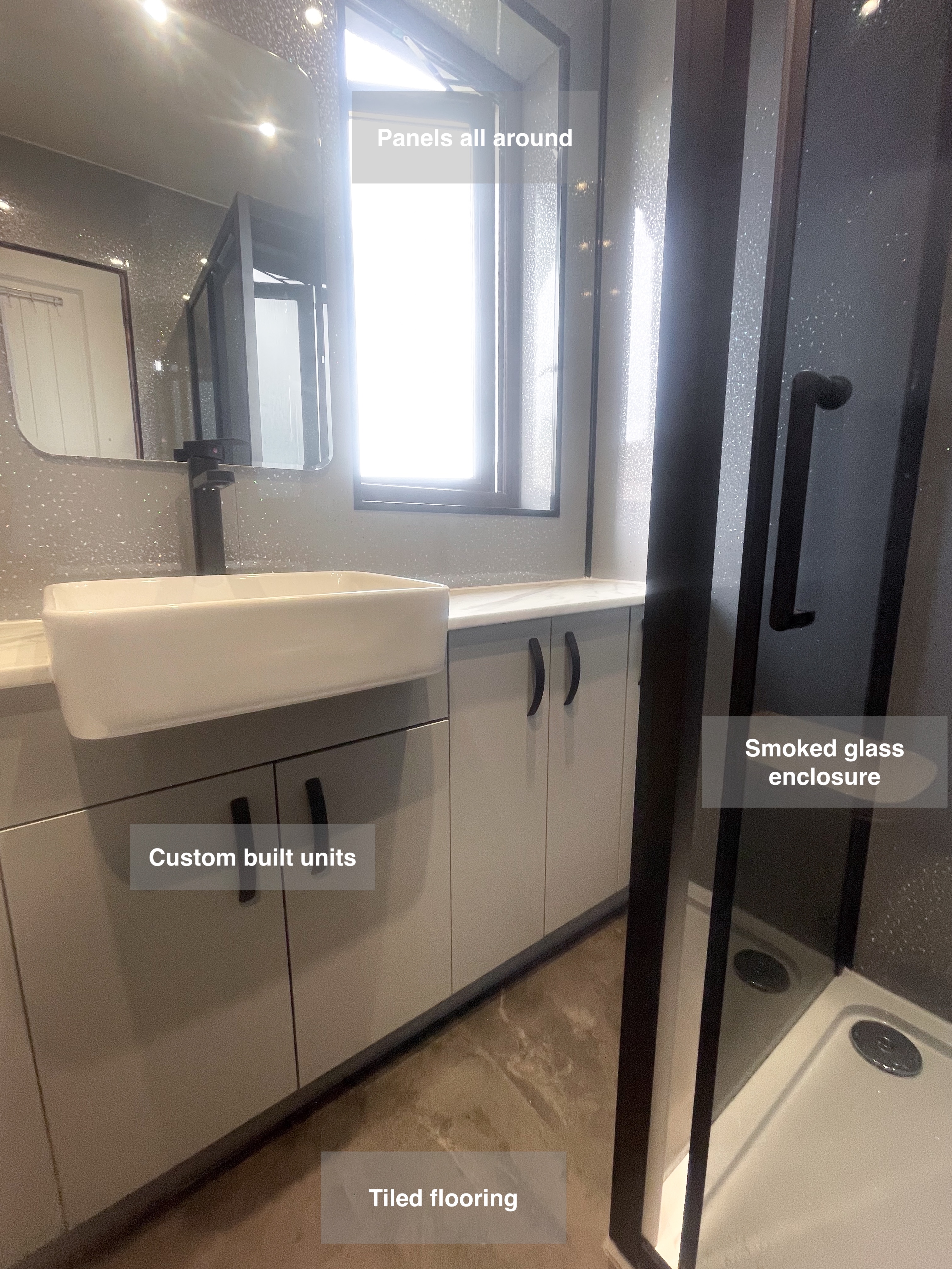 One of our recent projects showcases a modern and low-maintenance design, combining durability with style. ✅ Solid core panels fitted throughout the room for a seamless, waterproof finish. ✅ Vinyl click flooring, offering both elegance and practicality. ✅ LED mirror placed strategically on the side wall to work with the window layout. ✅ Curved…