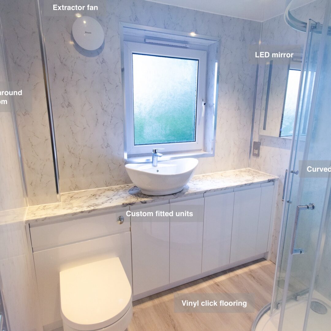 The toilet and vanity unit were repositioned for improved layout and functionality, and a spacious radiator was installed to enhance comfort. The floor was expertly tiled, and durable wall panels were fitted throughout, ensuring a stylish look that’s easy to maintain.