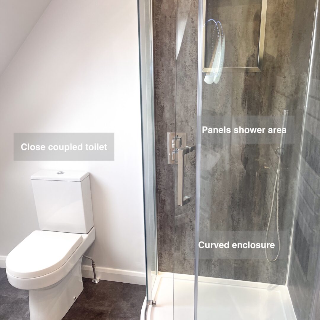 Other features of the renovation include a close-coupled toilet and a towel radiator, both of which add both style and function to the space. Additionally, we installed a LED cabinet, providing ample storage space and further enhancing the modern look of the ensuite.