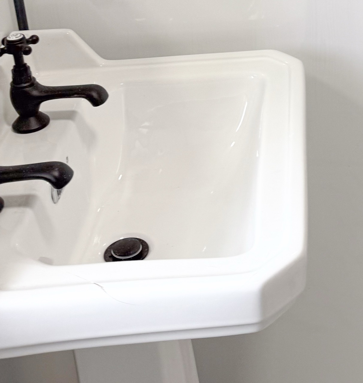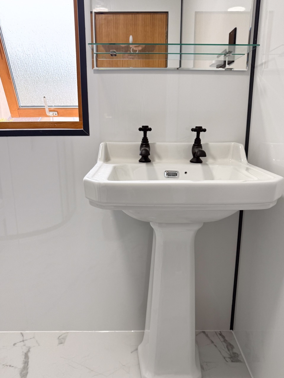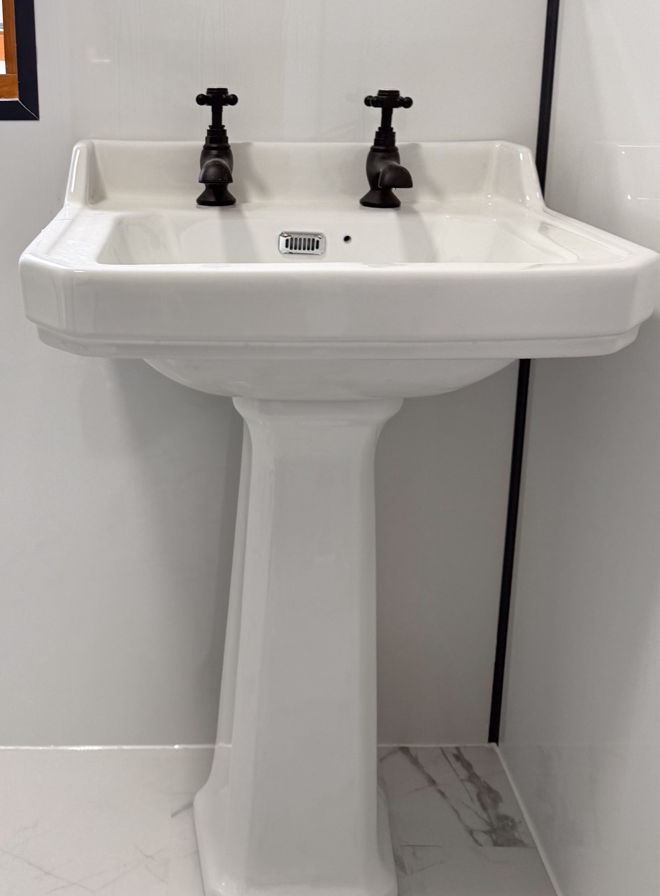 - Pedestal sink with separate taps – a classic choice that keeps things neat (you either love them or hate them!).