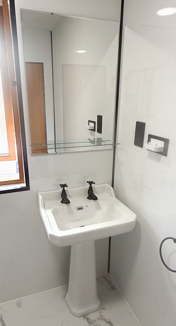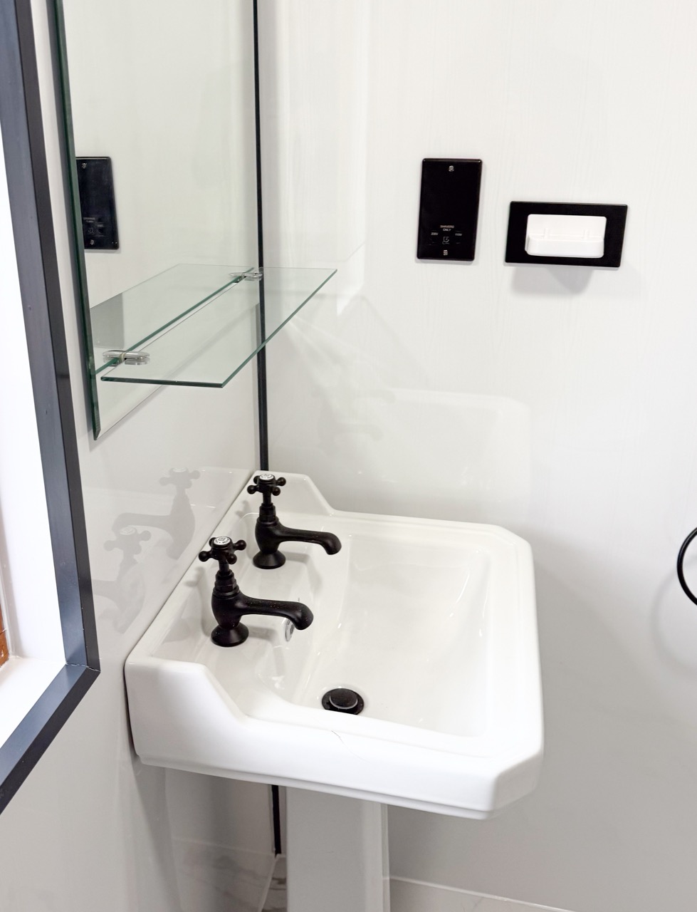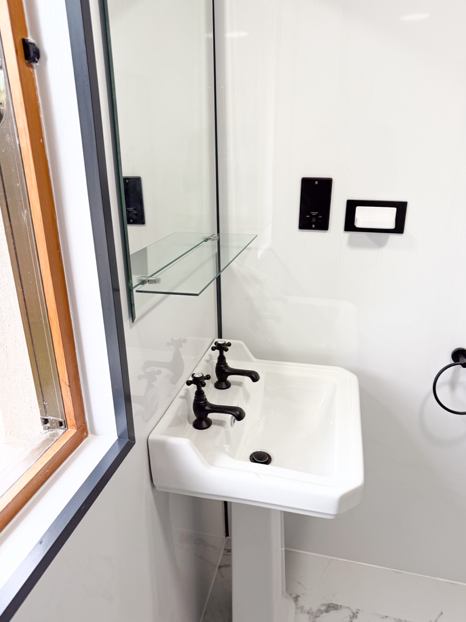 - Pedestal sink with separate taps – a classic choice that keeps things neat (you either love them or hate them!).