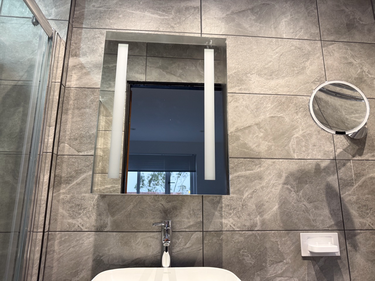 The LED cabinet and illuminated shower recesses provide practical lighting exactly where it’s needed, while also adding a modern, high-end feel. The dual toothbrush charger keeps cables hidden and surfaces tidy.