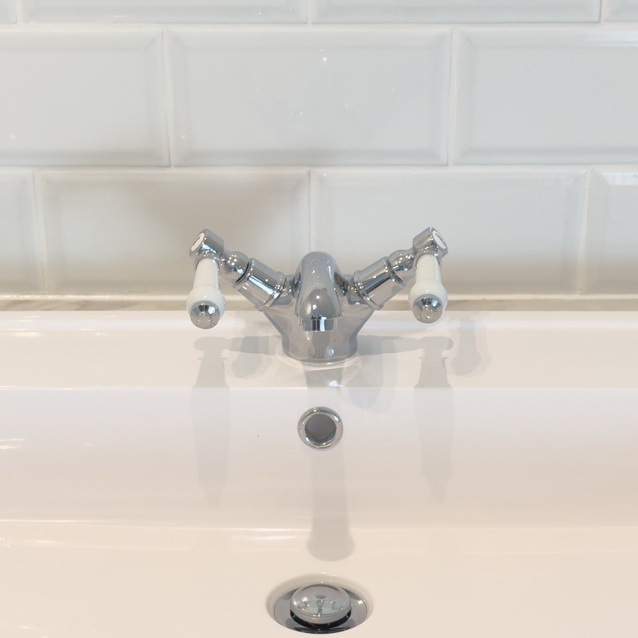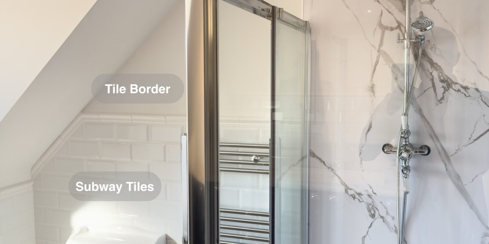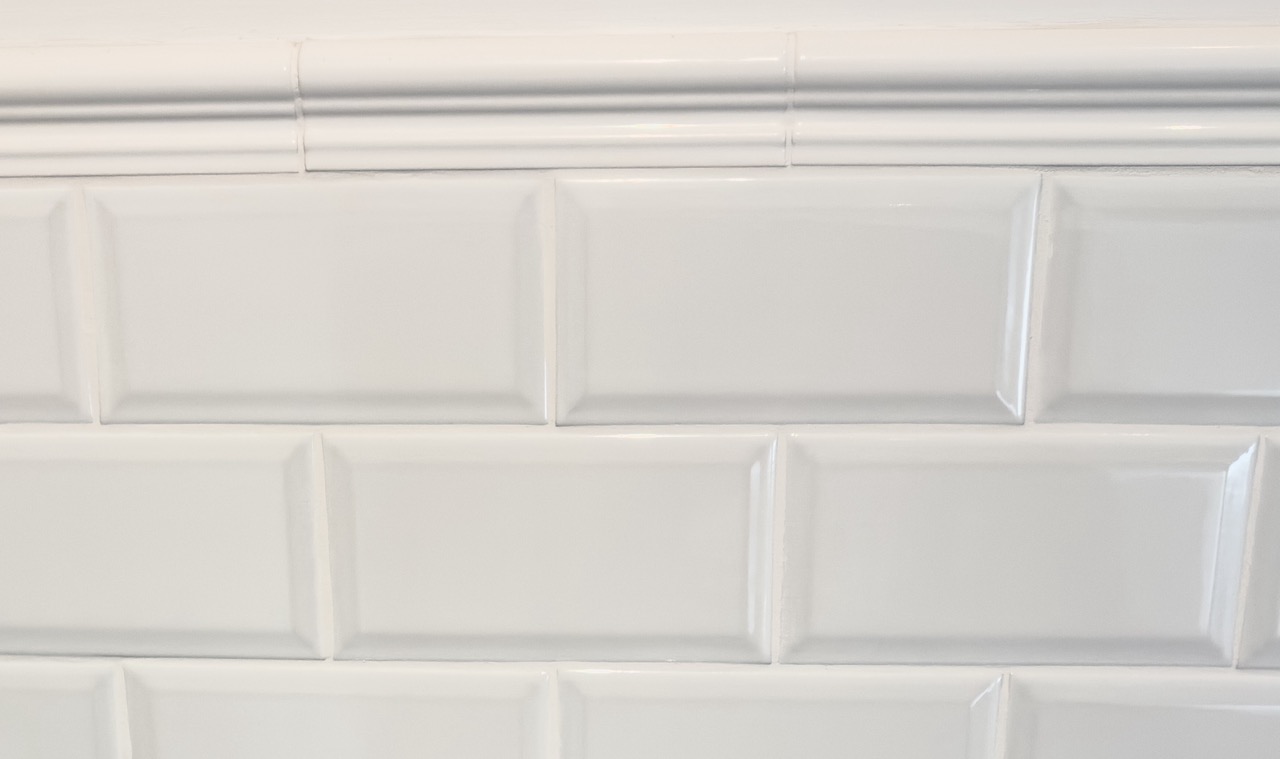 - Tile detail – metro tiles above the vanity and behind the toilet, finished with a border for a smart, polished look.
