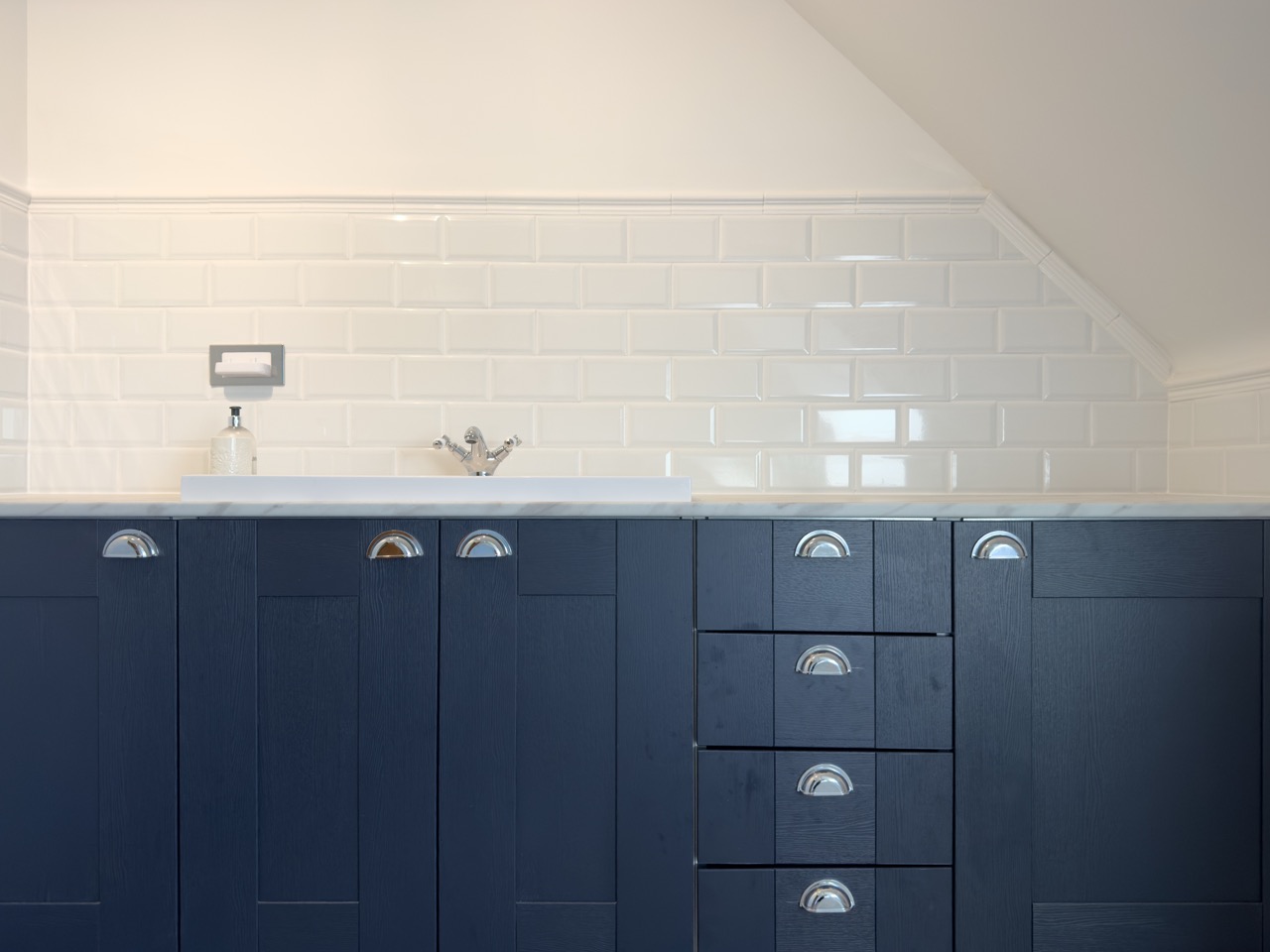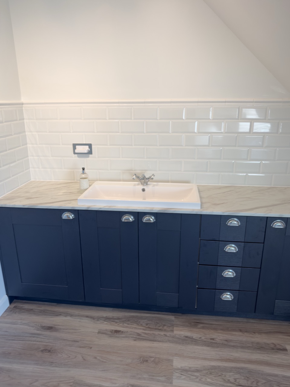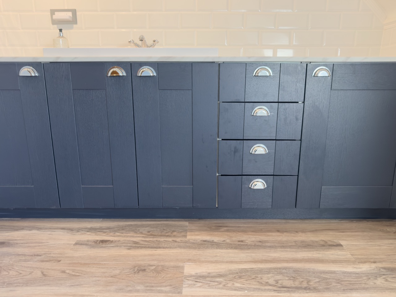 - Bespoke vanity – custom fitted at 600mm deep, with four drawers to give plenty of storage and keep everything neat.