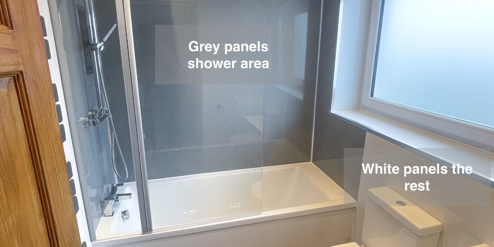 We recently completed a bathroom refurbishment featuring full-panelled walls and a white UPVC ceiling for a clean, modern look. We installed durable vinyl click flooring for warmth underfoot, downlights for a sleek finish, and an externally vented extractor fan for optimal airflow.