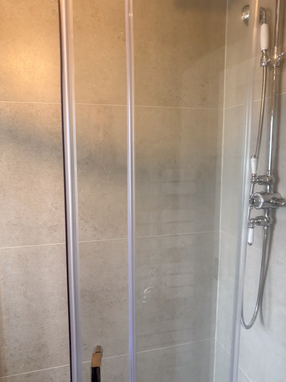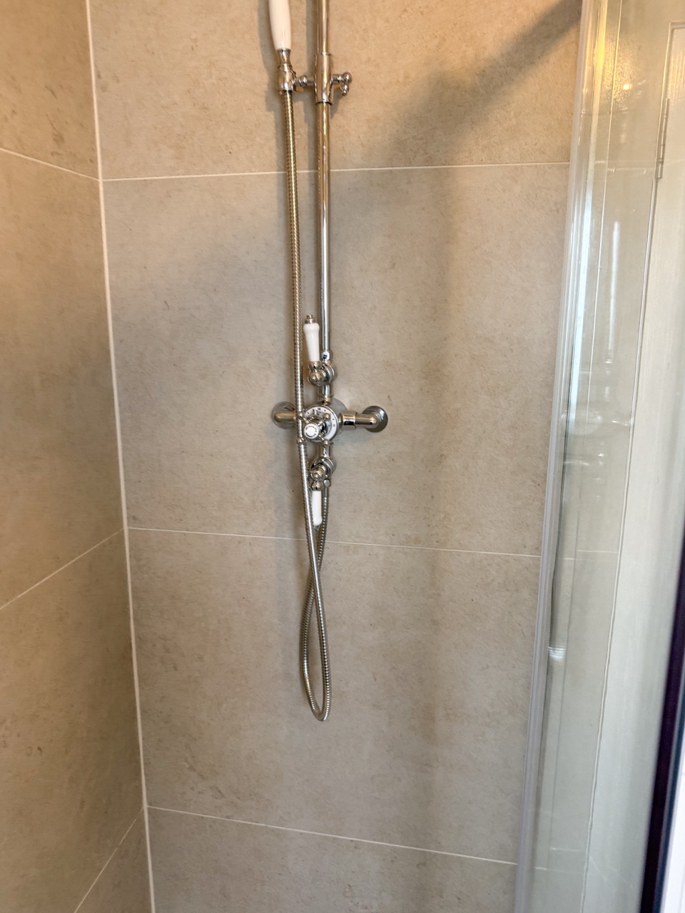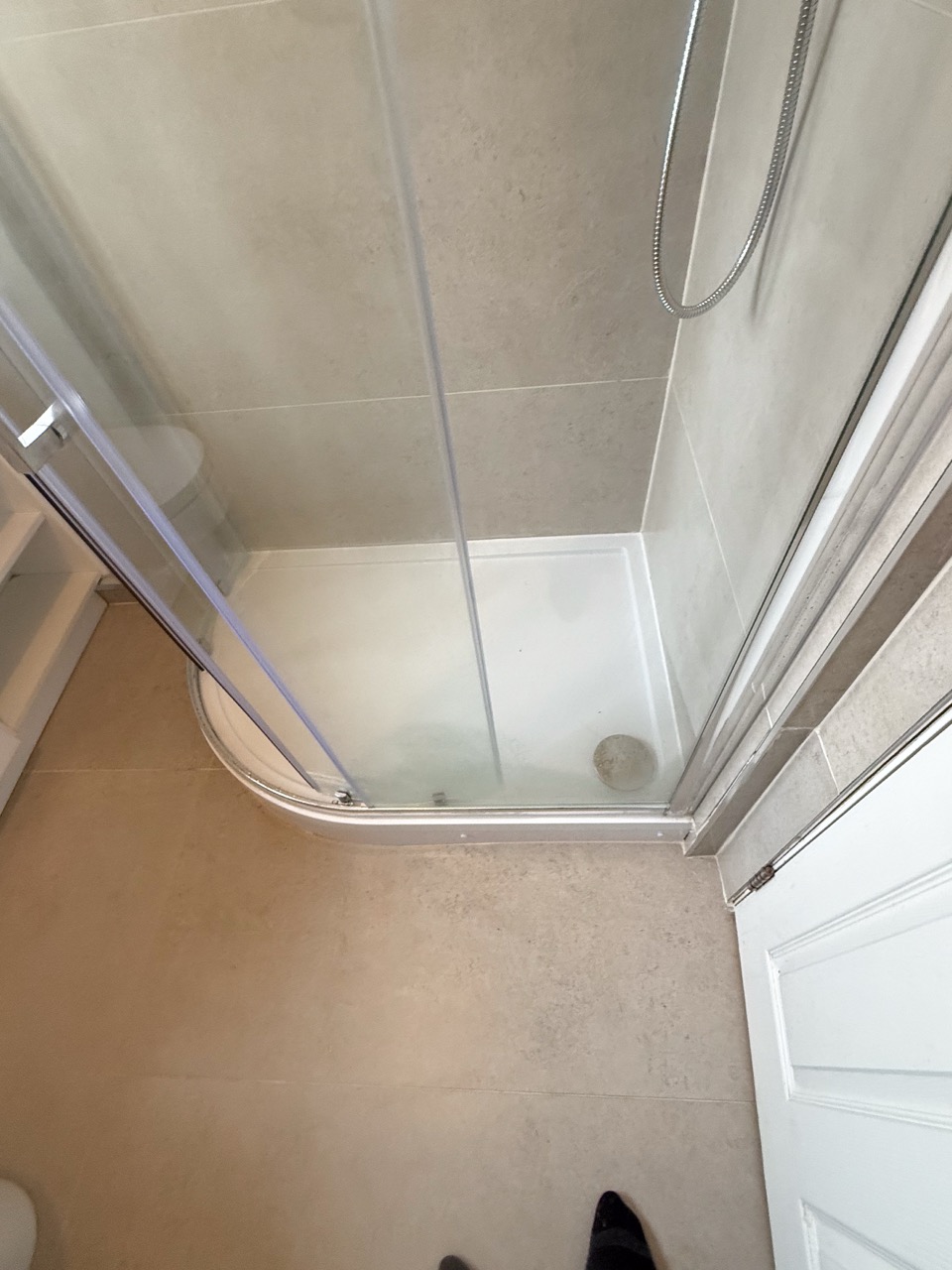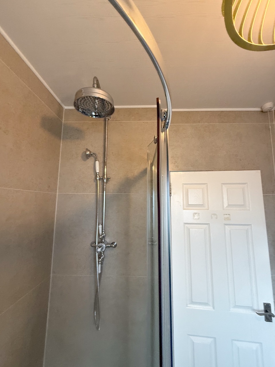 We redesigned the layout to create a comfortable, easy-access shower within a quadrant enclosure, making daily routines simpler and safer. Large format tiles with epoxy grout were used throughout, giving the bathroom a clean, modern look while keeping maintenance to a minimum.