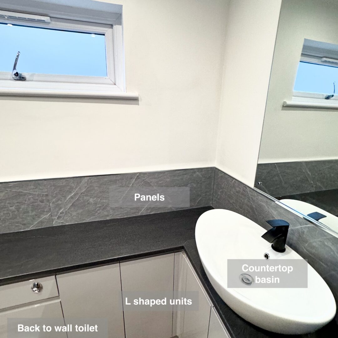 This full bathroom refurbishment showcases a blend of functionality and style. The room was elegantly finished with sleek panels throughout, complemented by durable vinyl click flooring for a modern look.
