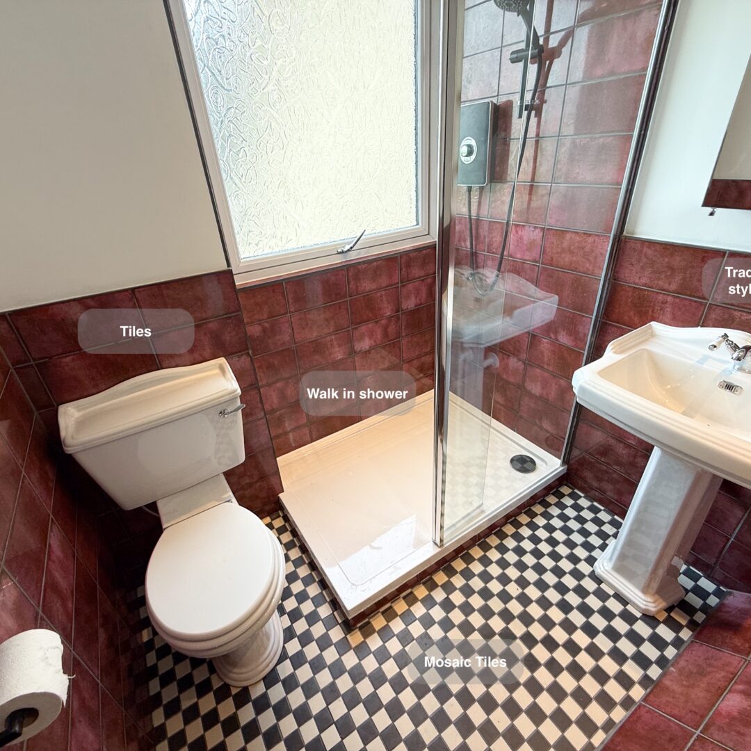 This bathroom was more challenging than most due to its unusual layout, with multiple angled walls and the central heating system located within the room itself. The client wanted a clean, modern walk-in shower with tiled finishes throughout, while still keeping the space practical and well organised.