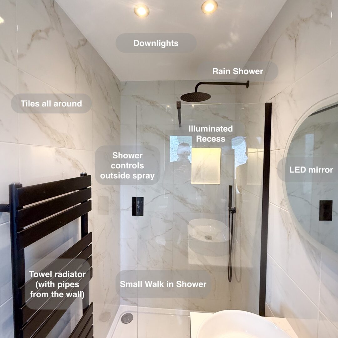 Full refurbishment where we transformed the old bath into a spacious walk-in shower and extended the room to create a more open, comfortable layout.