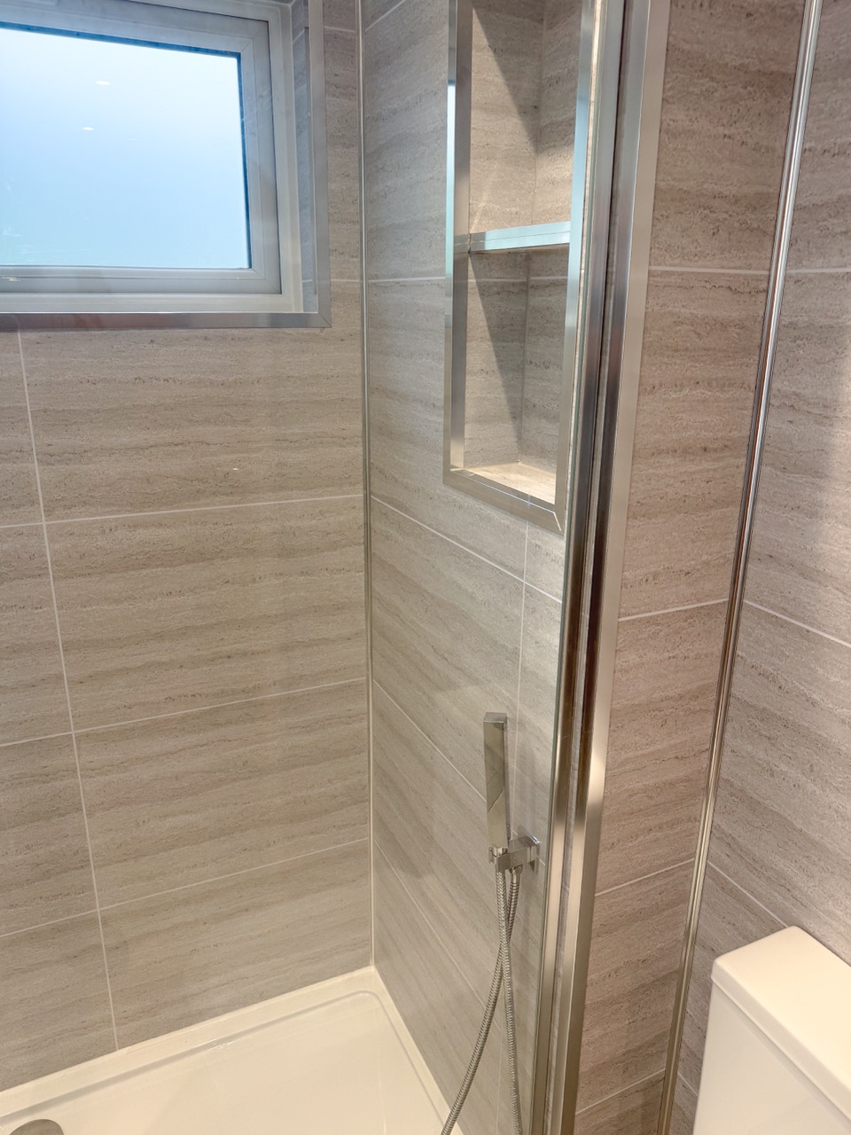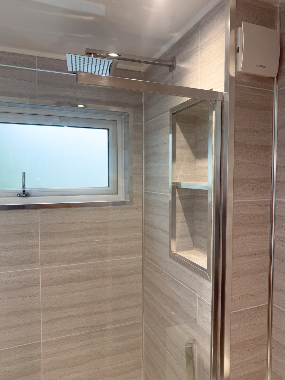 To make the shower area fully suitable long-term, we replaced the old window with a new UPVC window, and positioned the shower controls at the entry, so it’s easier to use without stepping under cold water.
